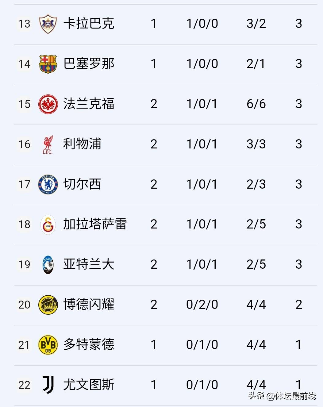 随着利物浦的失利,欧冠最新积分榜上,拜仁、皇家马德里和国际米兰以两连胜的成绩同积6分,拜仁凭借净胜球的优势暂时领先。热刺和巴黎分列第四和第五,马德里竞技则排在第六位。